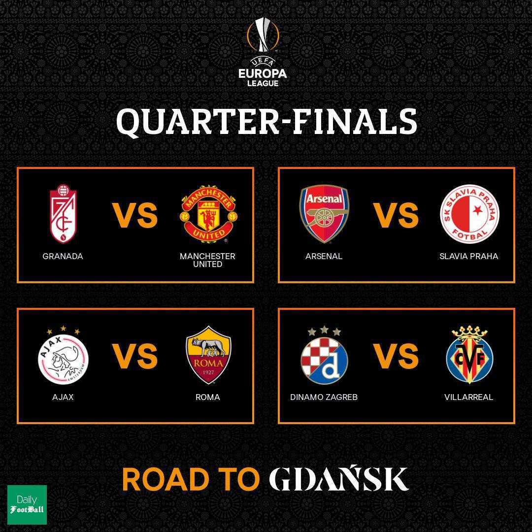 برنامه بازی های مرحله یک چهارم نهایی لیگ اروپا 2021 به شرح زیر است: