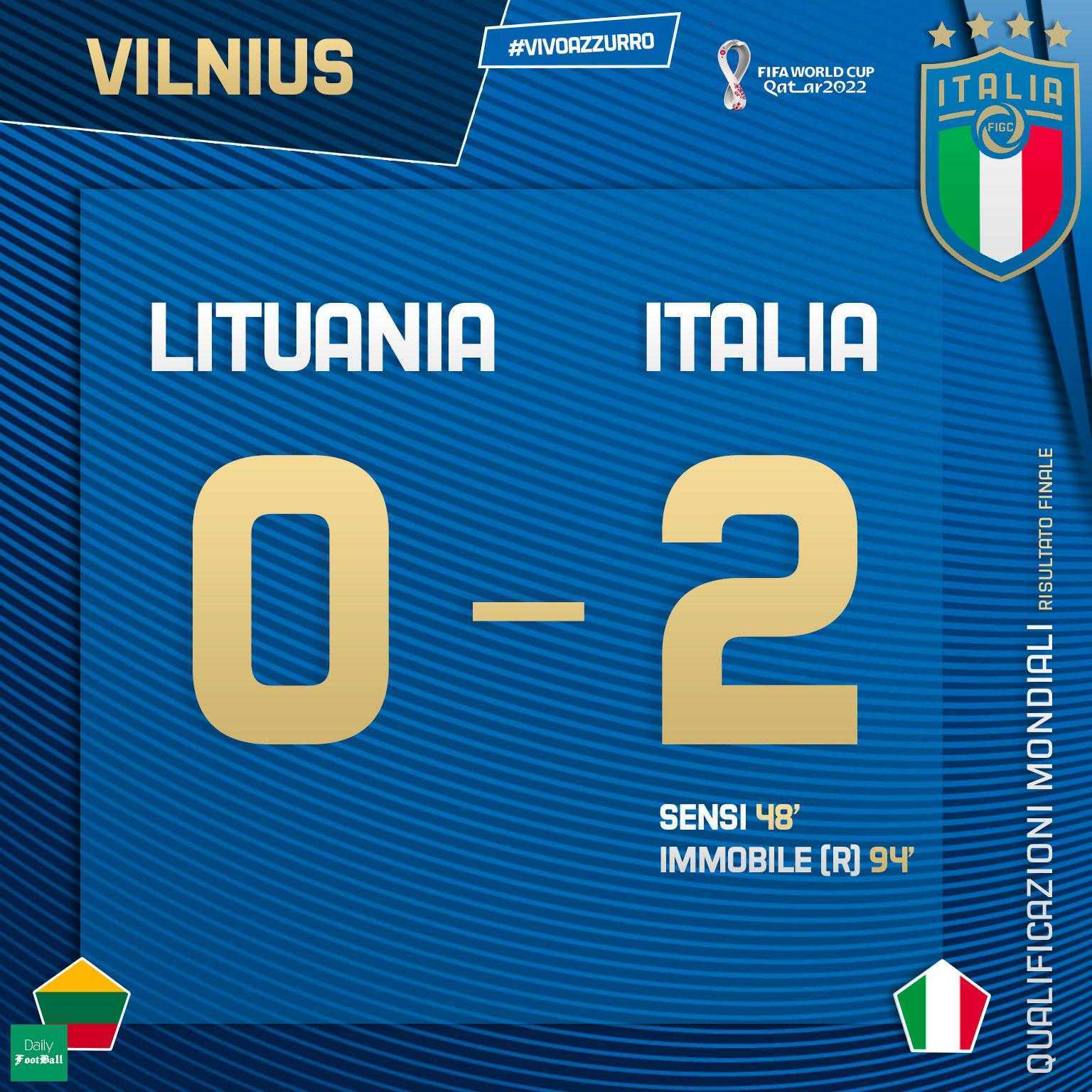 به گزارش دیلی فوتبال؛ تیم های ملی لیتوانی و ایتالیا در چارچوب بازی های مرحله گروهی مسابقات انتخابی جام جهانی 2022 به مصاف یکدیگر رفتند که این بازی با نتیجه 2 بر صفر به سود آتزوری به پایان رسید.