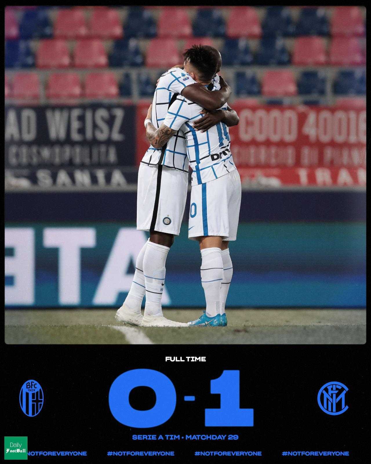 به گزارش دیلی فوتبال؛ تیم های بولونیا و اینتر در چارچوب بازی های هفته بیست و نهم مسابقات سری آ به مصاف یکدیگر رفتند که این بازی با نتیجه یک بر صفر به سود اینترمیلان به پایان رسید.