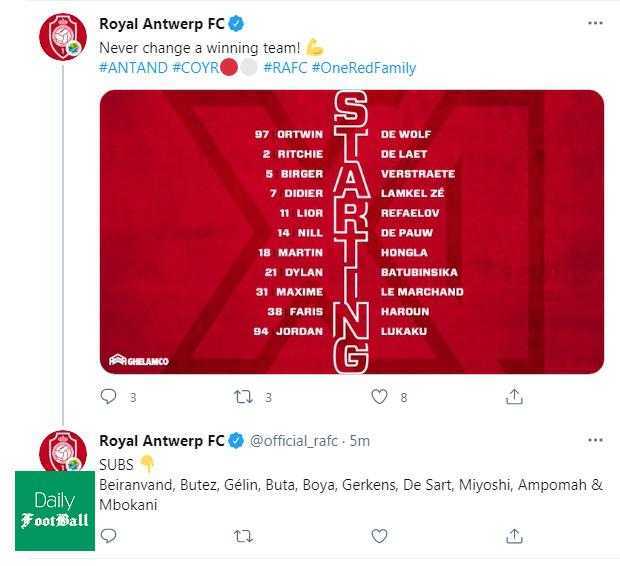 علیرضا بیرانوند، دروازه بان ایرانی آنتورپ در ترکیب اصلی این تیم برای بازی با اندرلخت جای نگرفته و نیمکت نشین است.