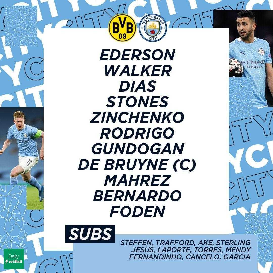 ترکیب منچستر سیتی برای بازی با دورتموندپسندها: