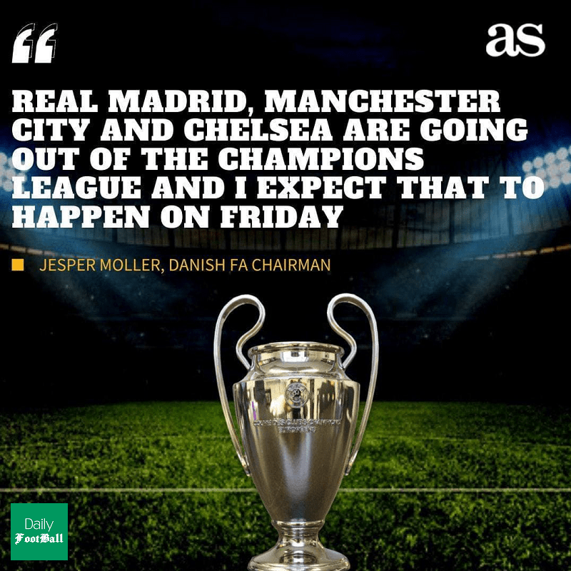 بر این اساس یاسپر مولر، مدیر یوفا اعلام کرد که تیم های چلسی، منچسترسیتی و رئال مادرید باید از لیگ قهرمانان این فصل اخراج شوند و من انتظار دارم این موضوع در روز جمعه محقق شود.