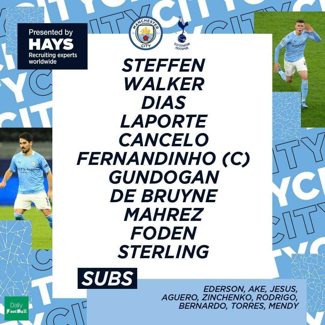 ترکیب منچستر سیتی برای بازی با تاتنهامترکیب اصلی تاتنهام