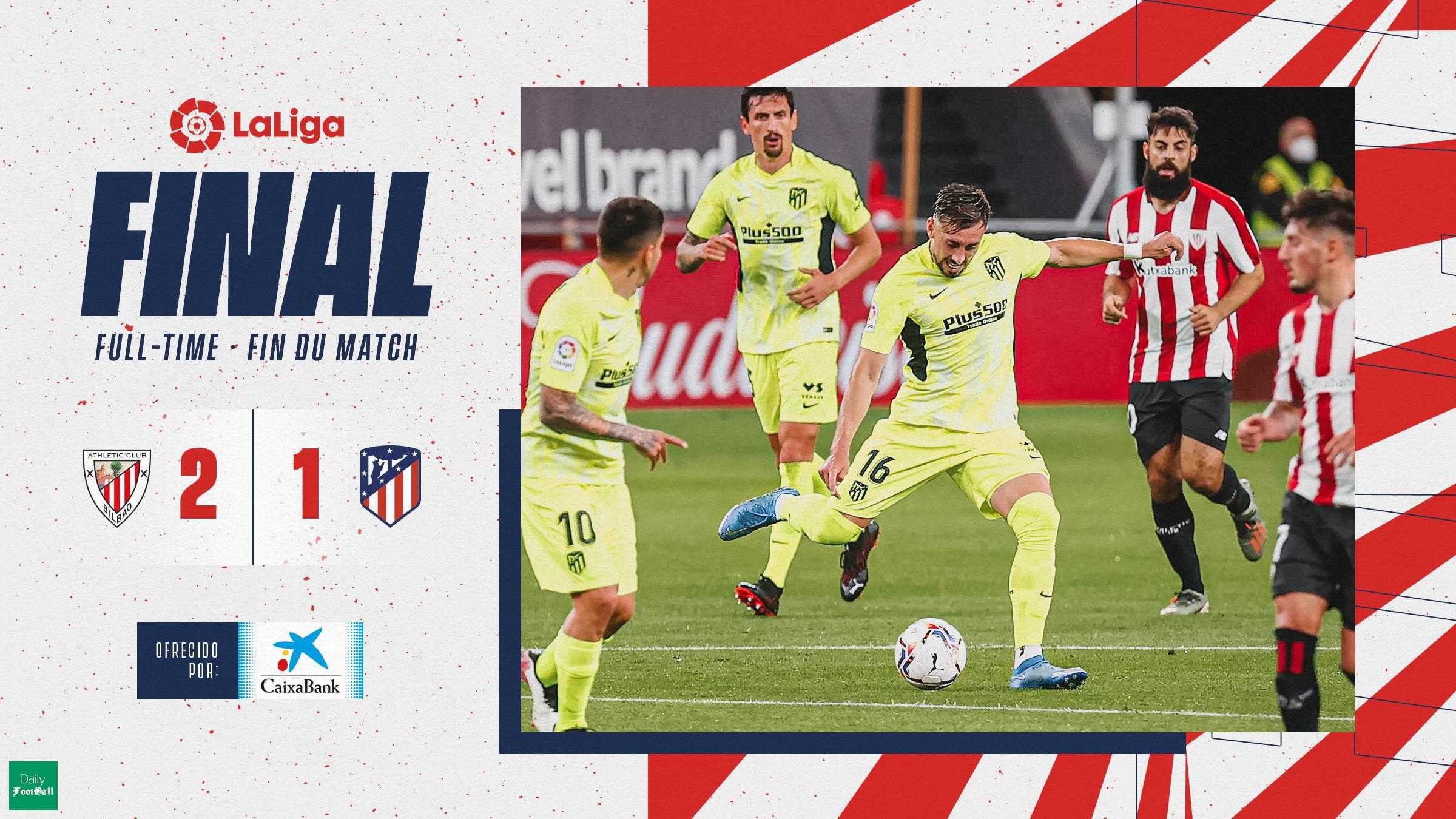 به گزارش دیلی فوتبال؛ تیم های اتلتیک بیلبائو و اتلتیکو مادرید در چارچوب بازی های هفته سی و دوم مسابقات لالیگا به مصاف یکدیگر رفتند که این بازی با نتیجه 2 بر یک به سود بیلبائو به پایان رسید.