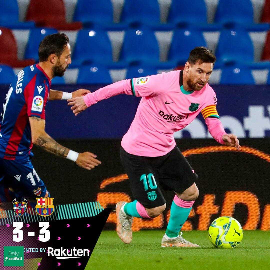 به گزارش دیلی فوتبال؛ تیم های لوانته و بارسلونا در چارچوب بازی های هفته سی و ششم مسابقات لیگ برتر انگلیس به مصاف یکدیگر رفتند که این بازی با نتیجه تساوی 3 بر 3 به پایان رسید.