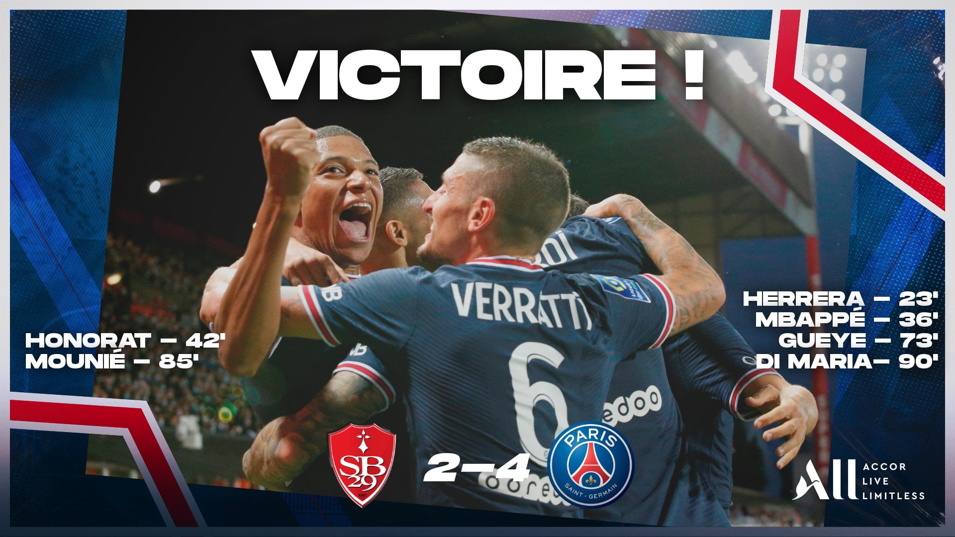 گل های این بازی را آندر هررا در دقیقه 23، کیلیان امباپه در دقیقه 36، ادریس گانا گوئیه در دقیقه 73 و آنخل دیماریا در دقیقه 1+90 برای پاری سن ژرمن و رانک هونورات در دقیقه 42 و استیو مونیه در دقیقه 85 برای برست به ثمر رساندند.