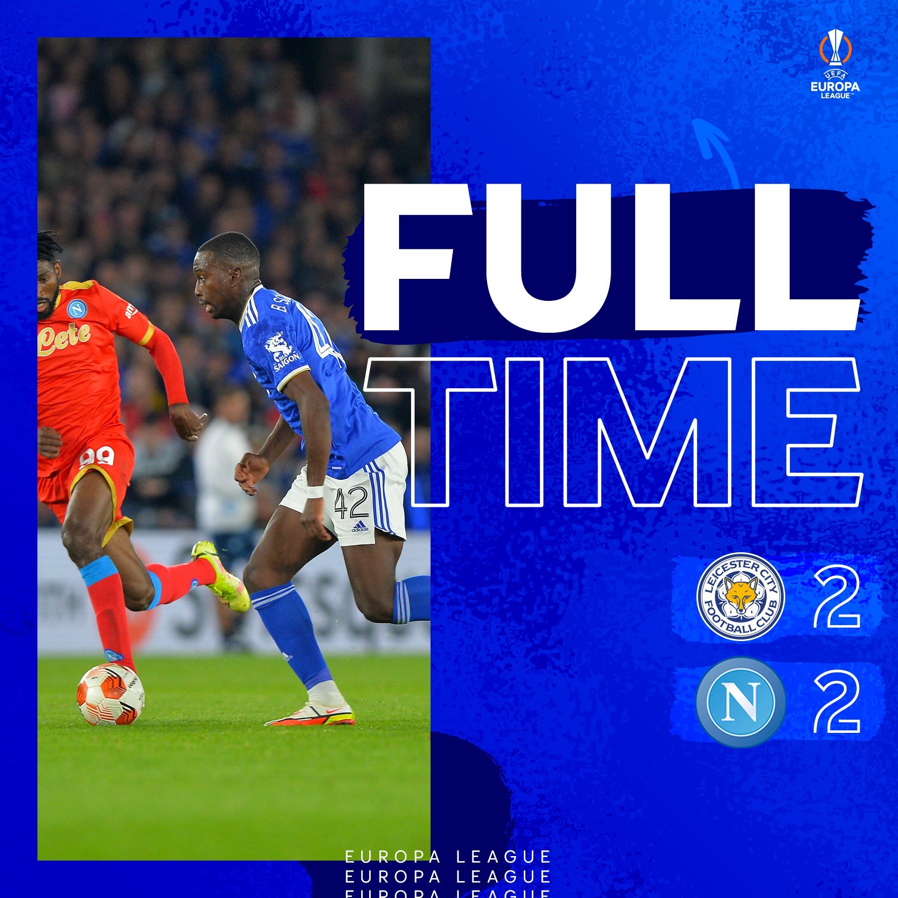 به گزارش دیلی فوتبال؛ تیم های لسترسیتی و ناپولی در چارچوب بازی های هفته اول مرحله گروهی مسابقات لیگ اروپا به مصاف یکدیگر رفتند که این بازی با نتیجه تساوی 2 بر 2 به پایان رسید.