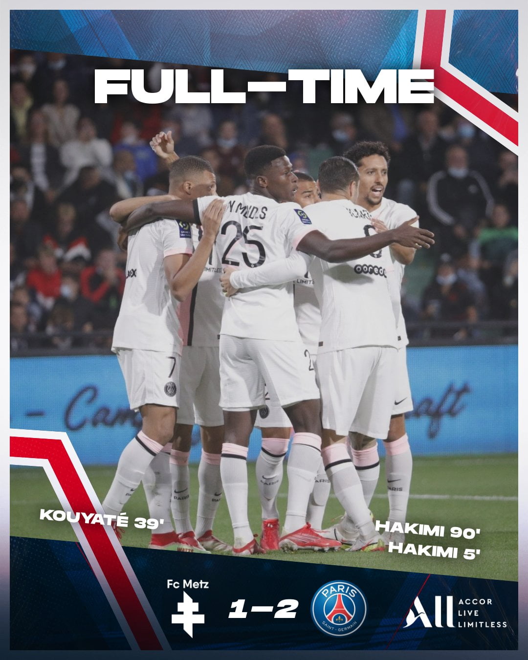 گل های این بازی را اشرف حکیمی در دقایق 5 و 5+90 برای پاری سن ژرمن و کویاته در دقیقه 39 برای متز به ثمر رساندند.