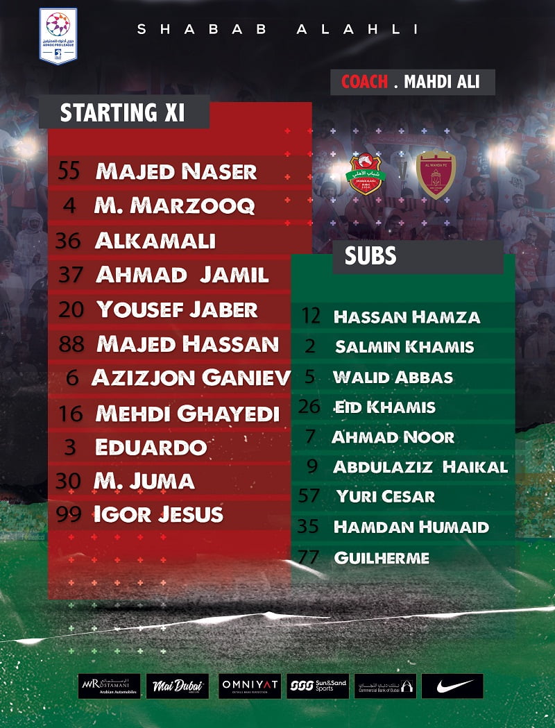 گفتنی است، مهدی قائدی مهاجم ایرانی شباب الاهلی در ترکیب اصلی این تیم مقابل الوحده قرار گرفته است.