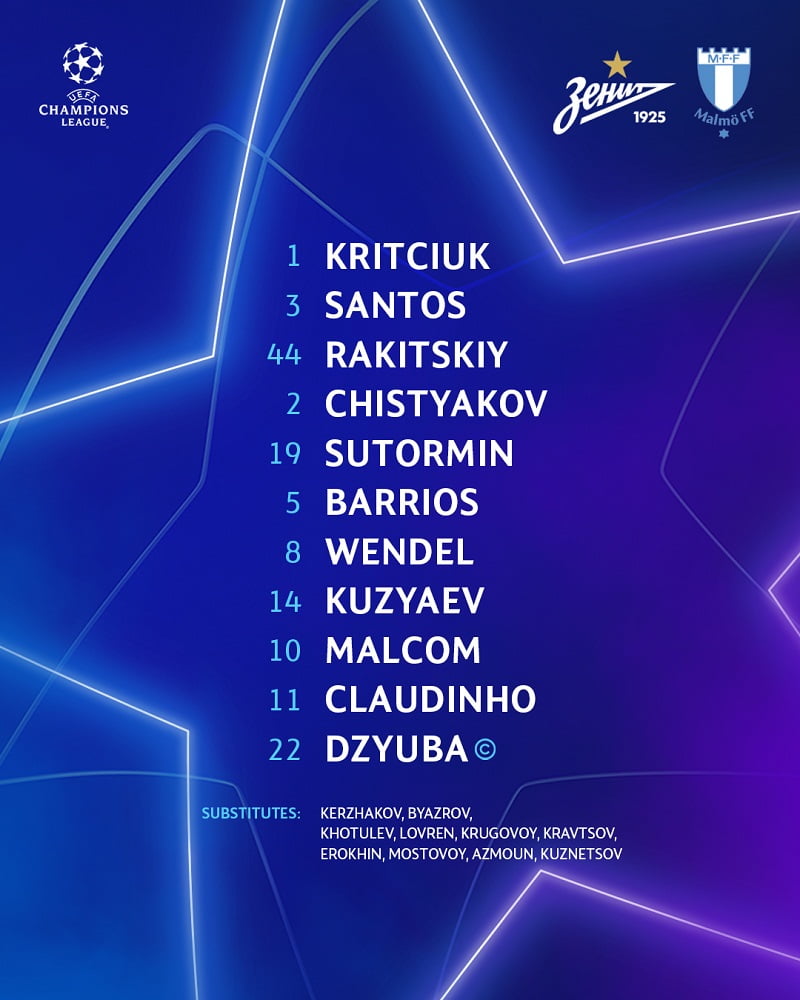گفتنی است، سردار آزمون مهاجم ایرانی زنیت سن پترزبورگ در ترکیب اصلی این تیم مقابل مالمو قرار نگرفته و نیمکت نشین است.