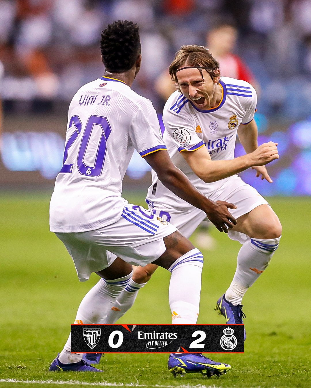 با این نتیجه تیم فوتبال رئال مادرید به عنوان قهرمانی رقابت های سوپرجام اسپانیا که در عربستان سعودی برگزار شد، دست یافت.