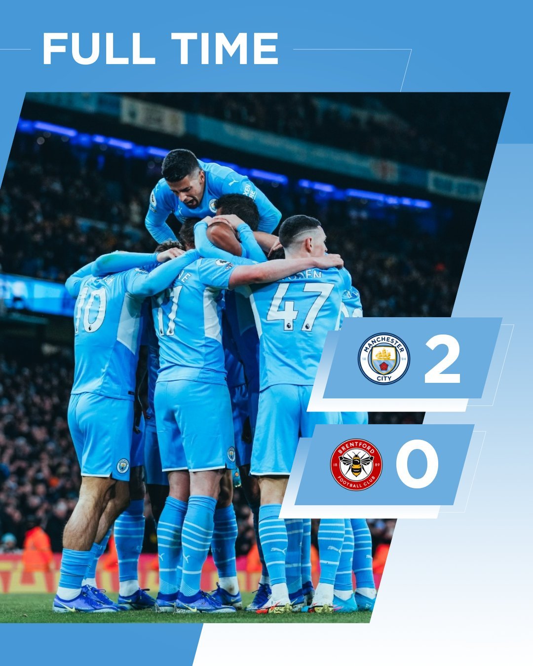 با این نتیجه تیم فوتبال منچستر سیتی با کسب پیروزی فصل 60 امتیازی شد و در صدر جدول ماند.