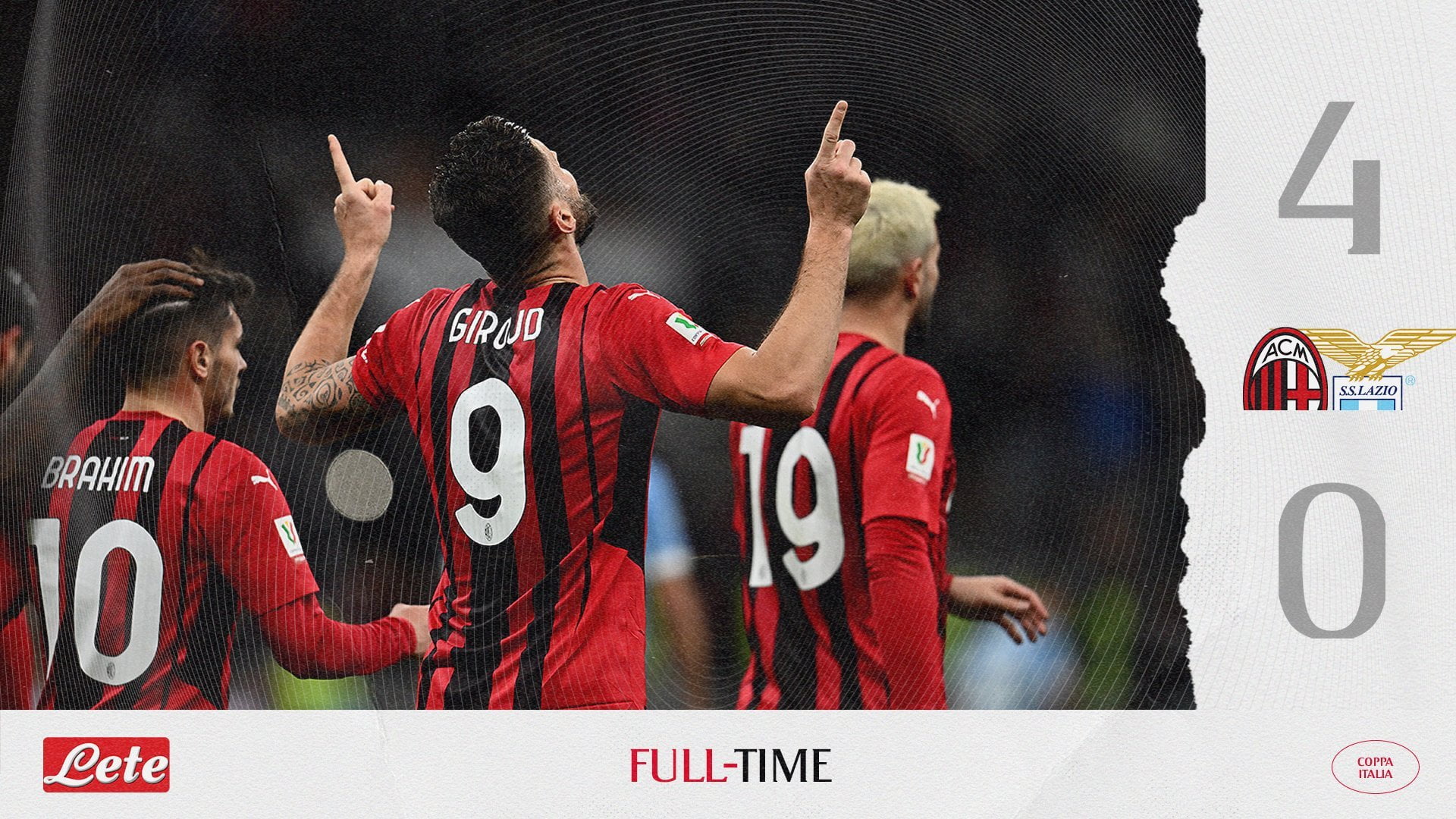 به گزارش دیلی فوتبال؛ تیم های میلان و لاتزیو در چارچوب بازی های مرحله یک چهارم نهایی مسابقات جام حذفی ایتالیا به مصاف یکدیگر رفتند که این بازی با نتیجه 4 بر صفر به سود روسونری به پایان رسید.